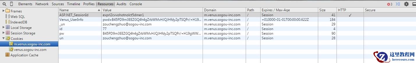 在chrome控制台中的resources选项卡中可以看到cookie的信息。