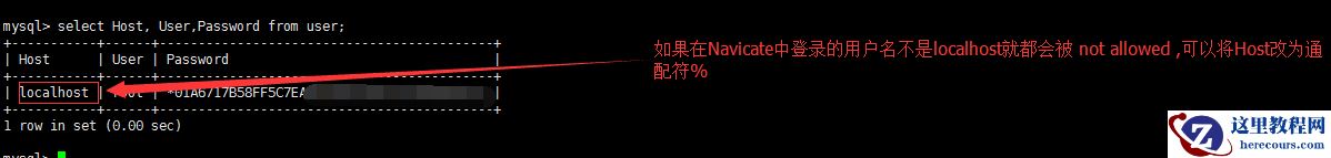 查看user表中的数据:select Host, User,Password from user;