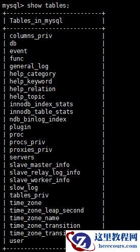查看mysql数据库中所有的表:show tables;