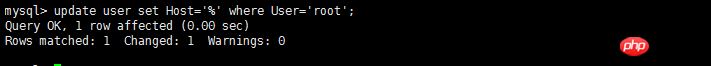 修改user表中的Host:update user set Host='%' where User='root';