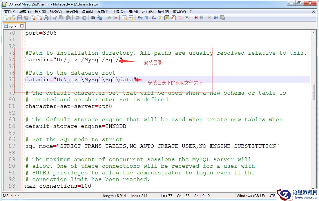 由于使用的是安装版本,所以My.ini下的Datadir没有修改,所以报错,启动找不到数据文件,所以需要把my.ini 文件中的Datadir 改成你安装路径下的data文件