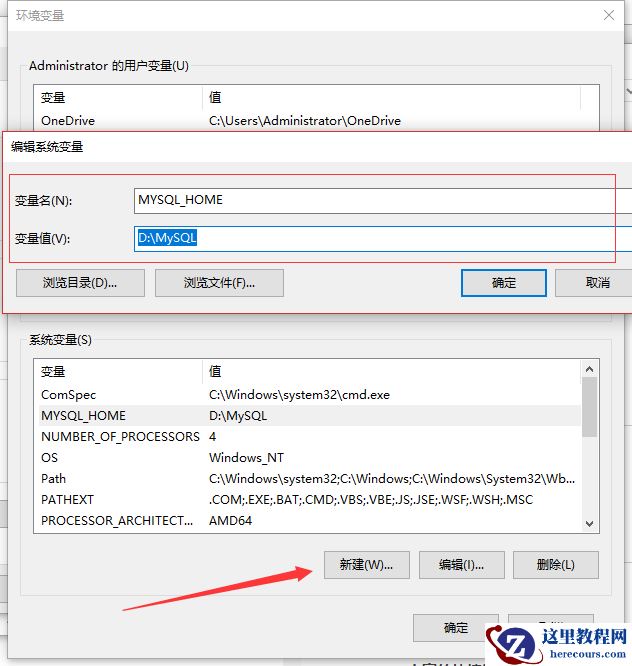 接下来添加Path,选择Path编辑,新增一条: %MYSQL_HOME%\bin