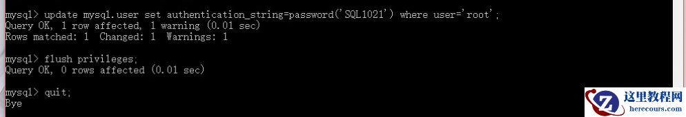 mysql>update mysql.user set anthentication_string=password('你的密码') where user='root';