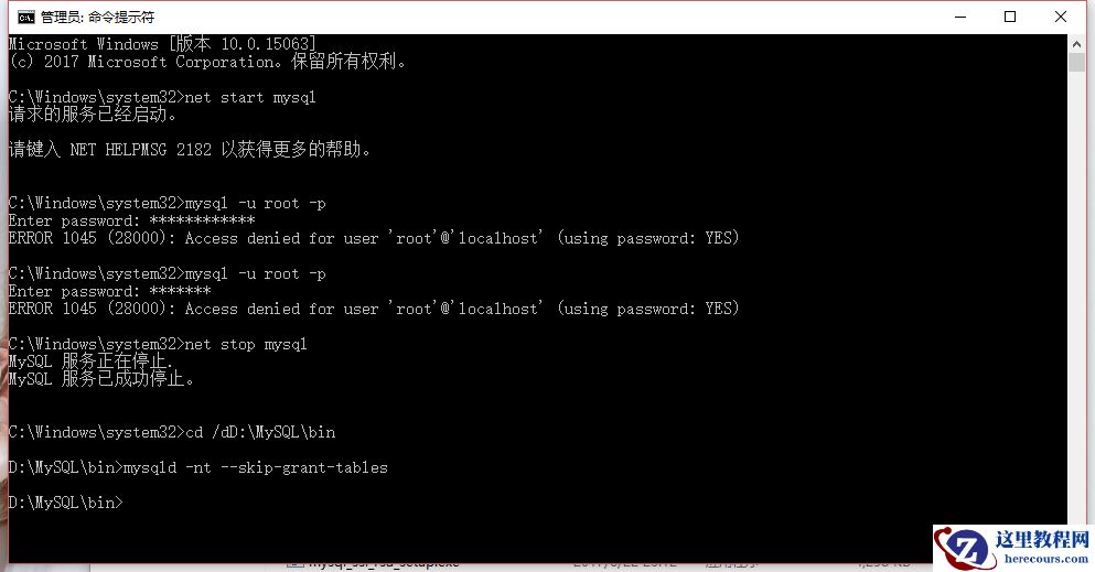 重新打开一个管理员命令提示符输入mysql进入重新改密码就OK了。