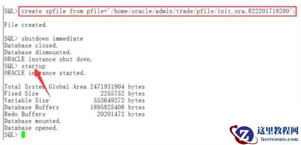 ② 利用静态参数文件重建动态参数文件spfile并重启数据库