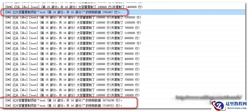 从2008R2分发记录过程中可以看到每次BULK都是以bcp文件为单位,复制最后一个bcp文件花费了大概22分钟,而前面的每个文件都是十几秒;还是由于我当前的表只有三个字段而且除了主键没有索引否则的时间就更长了。