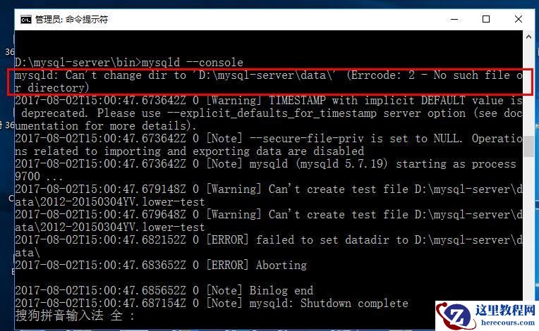 这里提示,mysql文件夹下没有\data这个文件或者路径,这时我们新建一个