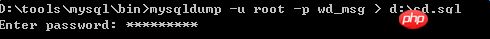 将端口为3306的数据库实例中的数据库wd_msg中的表结构以及表数据导出到cd.sql的文件中