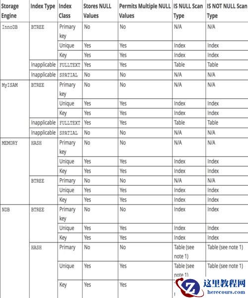从下表中也可以看出来不管是采用什么类型的存储引擎,在建立 unique key 的时候都是允许多个 NULL 存在的。。。。
