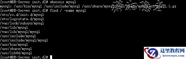 [root@DB-Server init.d]# find / -name mysql /etc/rc.d/init.d/mysql /etc/logrotate.d/mysql /var/lock/subsys/mysql /var/lib/mysql /var/lib/mysql/mysql /usr/include/mysql /usr/include/mysql/mysql /usr/bin/mysql /usr/share/mysql /usr/lib64/mysql
