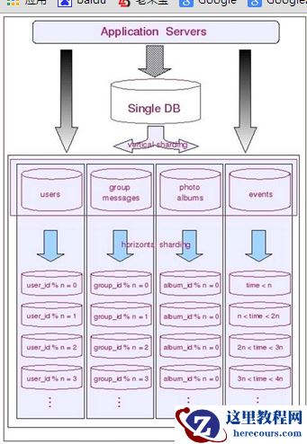 在经历过垂直拆分后的各个数据库集群中的每一个都仅仅有一个功能模块。而每一个功能模块中的全部表基本上都会与某个字段进行关联。如用户模块全部都能够通过用户ID进行切分,群组讨论模块则都通过群组ID来切分。相冊模块则依据相冊ID来进切分。最后的事件通知信息表考虑到数据的时限性(仅仅仅仅会訪问近期某个事件段的信息),则考虑按时间来切分。
