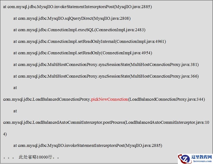 从堆栈可以看出来,某个异常,触发了MySQL-JDBC的bug,导致循环调用,直至栈溢出。在华为DDM支撑人员的建议下,对驱动代码进行了反编译,从反编译的情况下,可以看到的确是存在循环嵌套的可能。