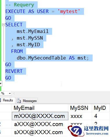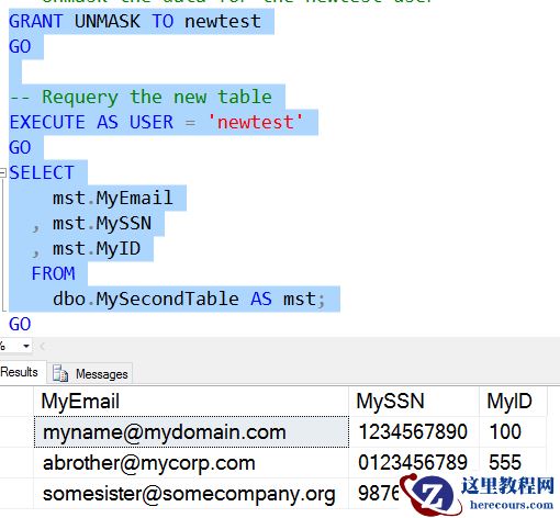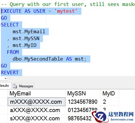 MySSN列的数据是未屏蔽的,但是MyEmail和MyID的数据仍然是屏蔽的