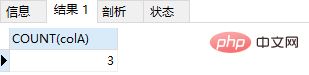 1 SELECT COUNT(colA) FROM `test`;