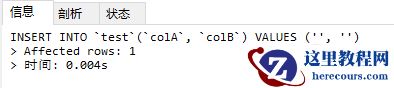 INSERT INTO `test`(`colA`, `colB`) VALUES ('', '');插入成功,说明字段即使设置为null值的时候,是可以插入空值的