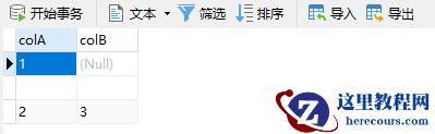 创建一个test表,colA是不可以存放null值的,colB是能存放null值的。