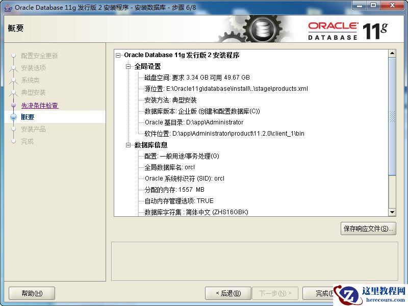 第六步:先决条件检查:本步骤安装程序会检查计算机的软硬件系统是否满足安装此Oracle版本的最低要求。直接下一步即可。