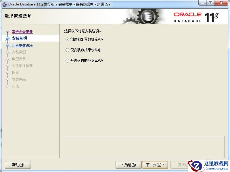 第三步:安全选项:直接选择默认创建和配置一个数据库(安装完数据库管理软件后,系统会自动创建一个数据库实例), 如图。