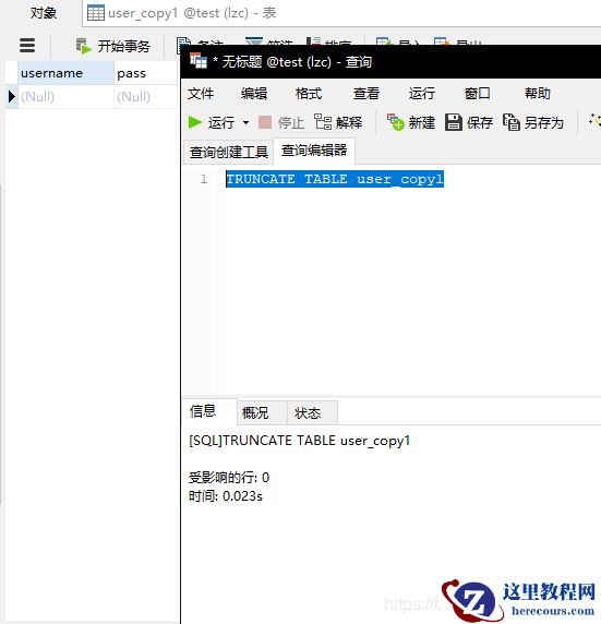 从结果可以看出两条语句都可以达到清空表的目的,而两者的区别是: