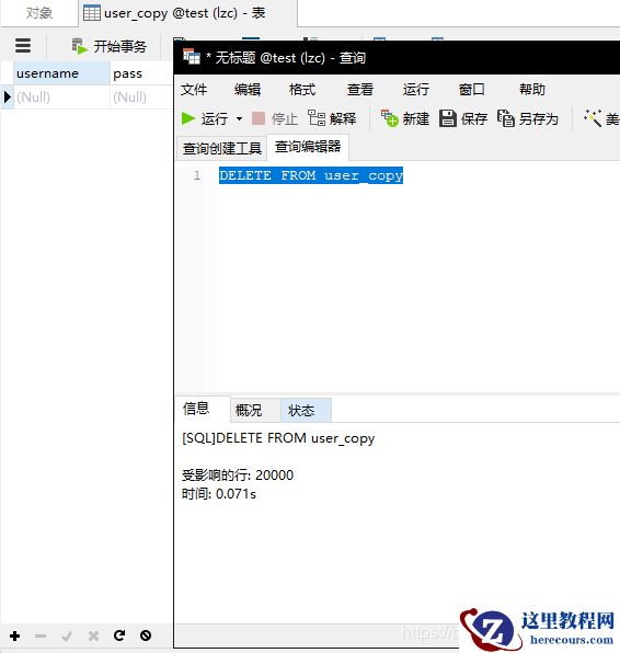 我使用的是MySql待测试的表有20000条记录,将其多拷两份以备测试