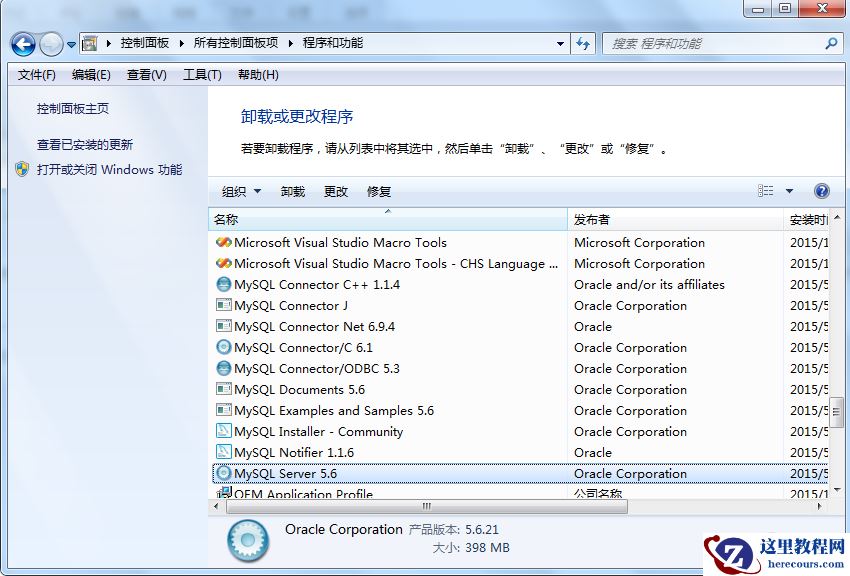 1、控制面板——》所有控制面板项——》程序和功能,卸载mysql server!