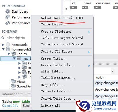 第一步:右键点击表,选择Select Rows -Limit 1000