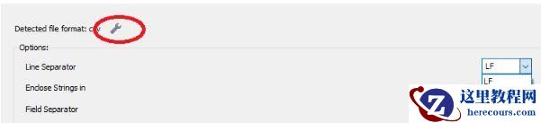 注意:点击红圈标记的按钮,弹出选项(Opinions),在行间隔处选择CR LF(windows系统”/r/n”); 编码格式utf-8; 列表部分根据需要选择对应字段;然后点击下一步,直到执行完成,即可完成数据导入;