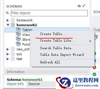 第二步:右键选择tables,选择create tables;