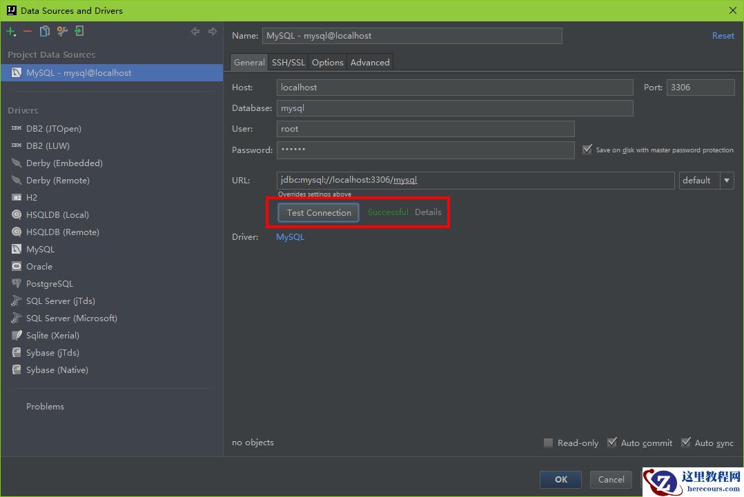 4、点击Test Connection按钮进行测试数据库连接是否正常
