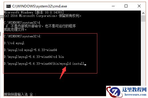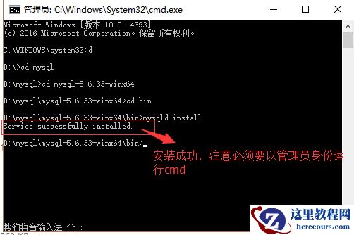 以管理员身份打开cmd窗口后,将目录切换到你解压文件的bin目录,再输入mysqld install回车运行就行了,注意是是mysqld,不是mysql。直接在cmd中输入我图片中的命令就行了。如图: