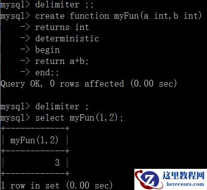 语法格式:create 函数名(参数 类型,参数 类型...) returns 类型 return 表达式值;