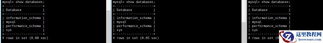 先看看三个MySQL的数据库状态:SHOW DATABASES;