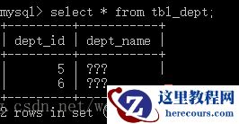5 . 直接查询语句,显示表数据。select * from tbl_dept;