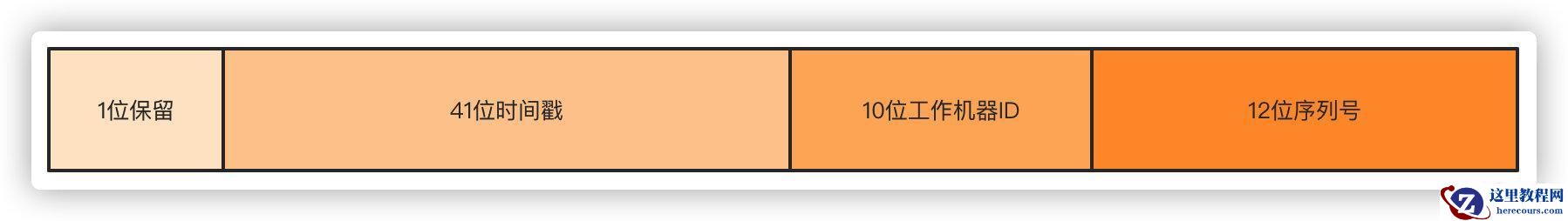 第一位不使用,默认都是0,41位时间戳精确到毫秒,可以容纳69年的时间,10位工作机器ID高5位是数据中心ID,低5位是节点ID,12位序列号每个节点每毫秒累加,累计可以达到2^12 4096个ID。