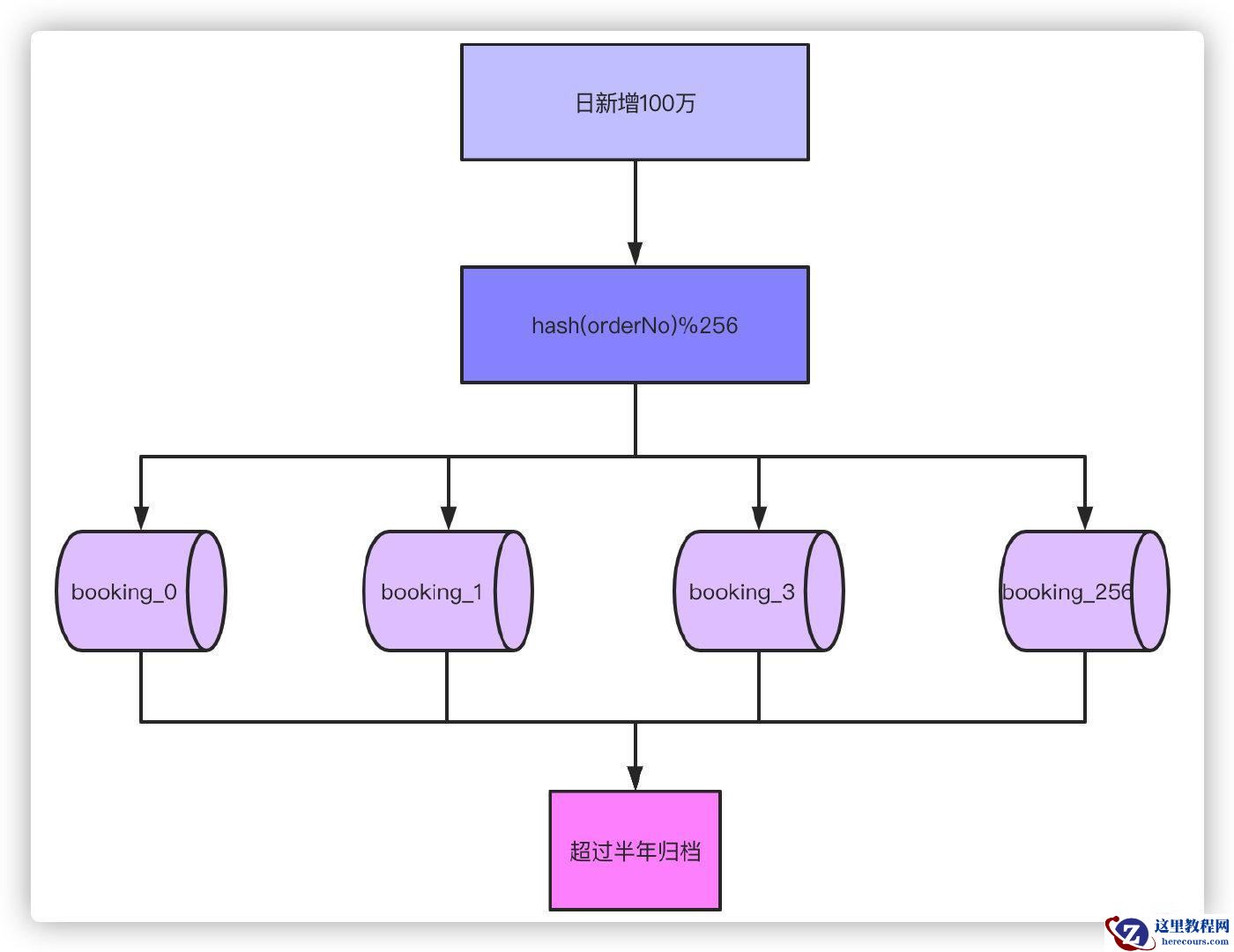 通过分表加上超过半年的数据归档之后,单表70万的数据就足以应对大部分场景了。接下来对订单号hash,然后对256取模的就可以落到具体的哪张表了。