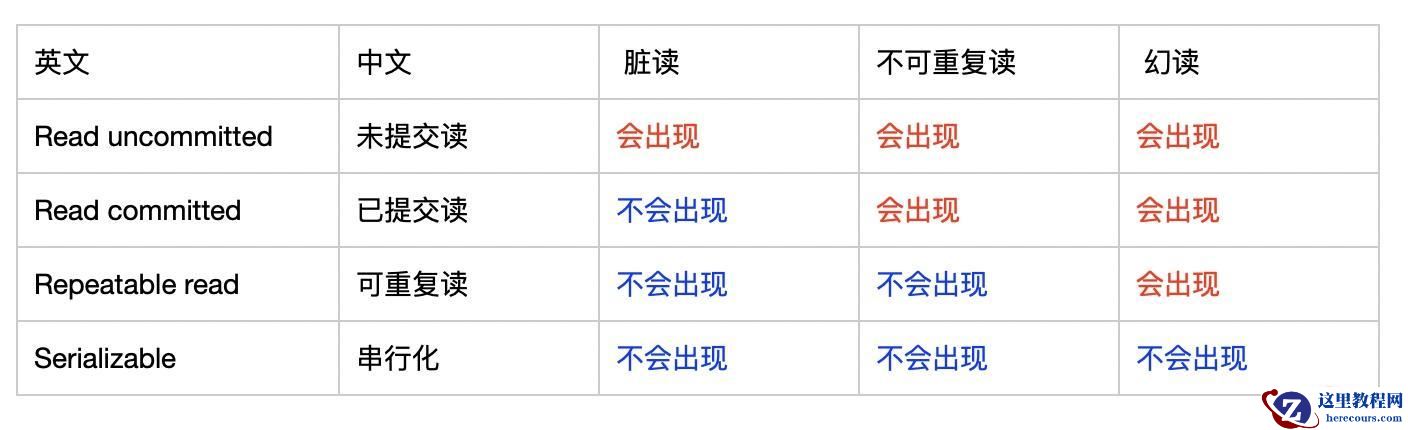下面具体看下各隔离级别是如何解决或未解决上面这些问题的:
