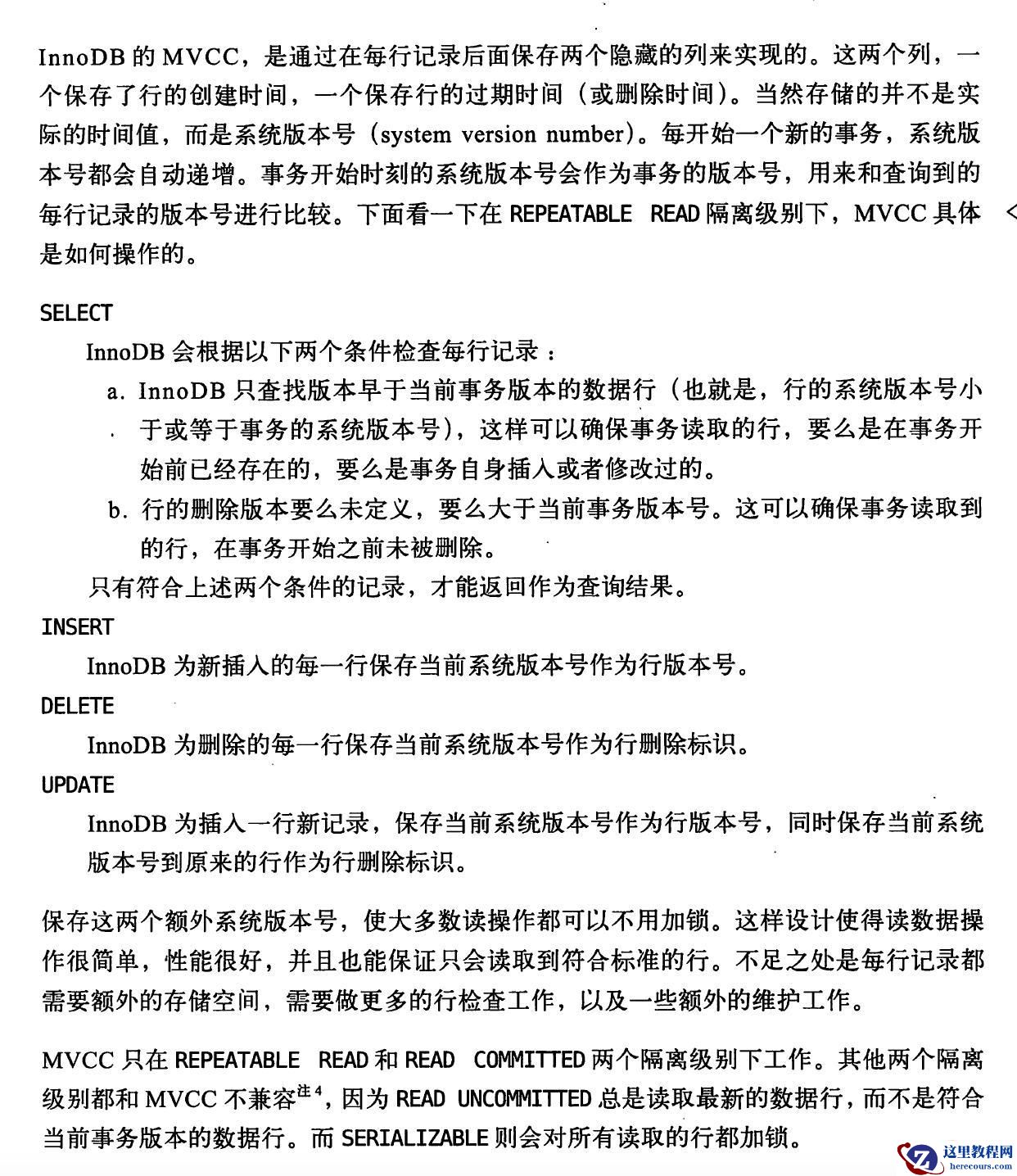 这本书写的很好,翻译的也不错,我对于 MySQL 最初的系统性认识也是因为读了这本书,然而在对于 MVCC 是如何实现的讲述上,个人认为是有些问题的。