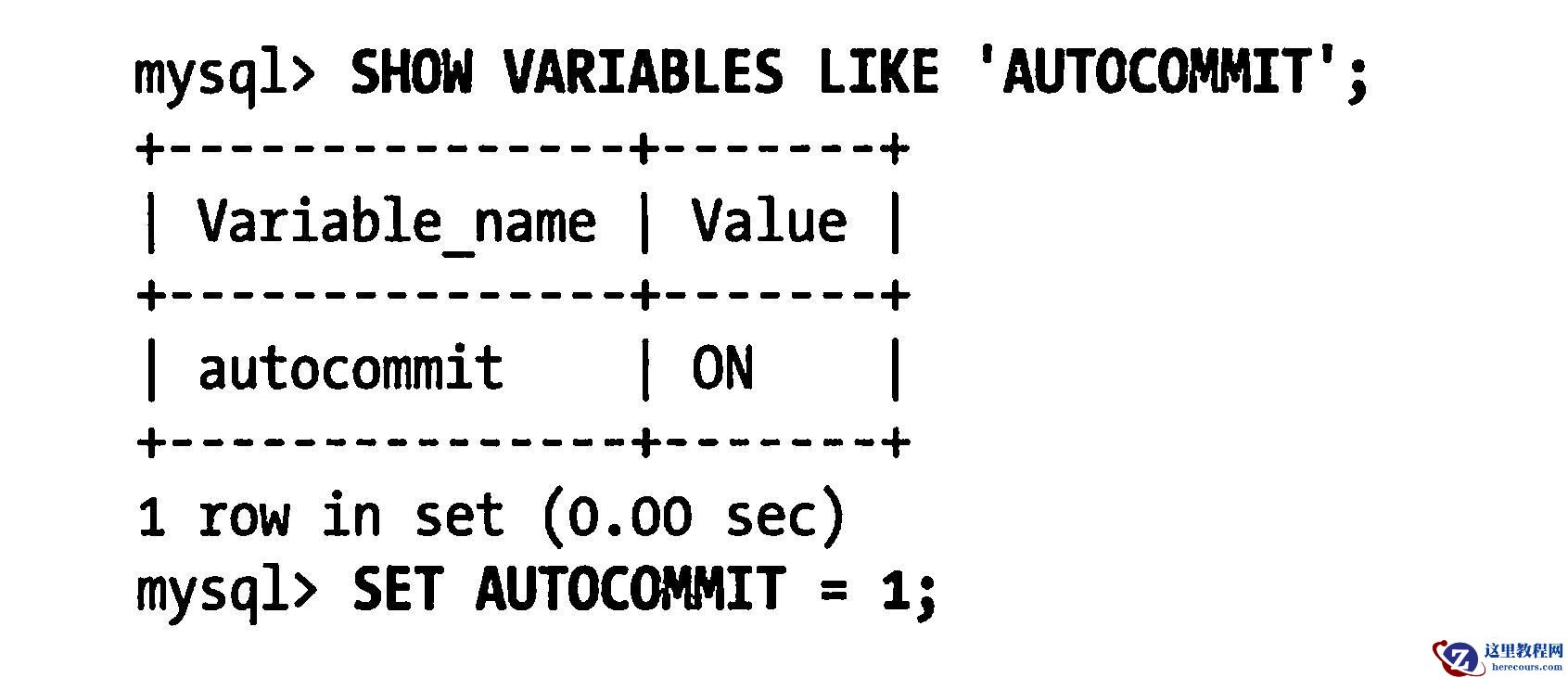 “MySQL默认采用自动提交(AUTOCOMMIT)模式。也就是说,如果不是显式地开始一个事务,则每个查询都被当作一个事务执行提交操作。在当前连接中,可以通过设置AUTOCOMMIT变量来启用或者禁用自动提交模式
