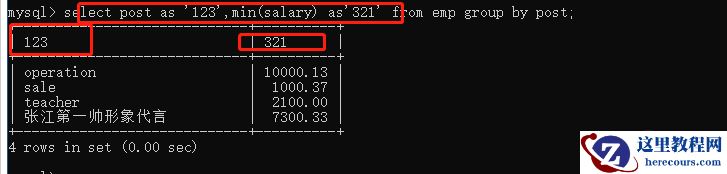select post,min(salary) emp group by post; select post,min(salary) as '最小' from emp group by post;