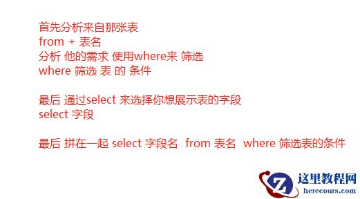 给你展示下实际操作 1.先确定 来自哪一张表 from emp 2. 筛选条件 where id >= 3 and id