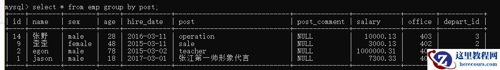 此时你如果还使用 select name from emp group by post; 就会报错 #ERROR 1055 (42000): 'day37.emp.name' isn't in GROUP BYselest 后应该接的是 你分组的字段名