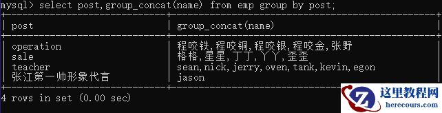 select post,group_concat('hahha',name) from emp group by post;还可以拼接