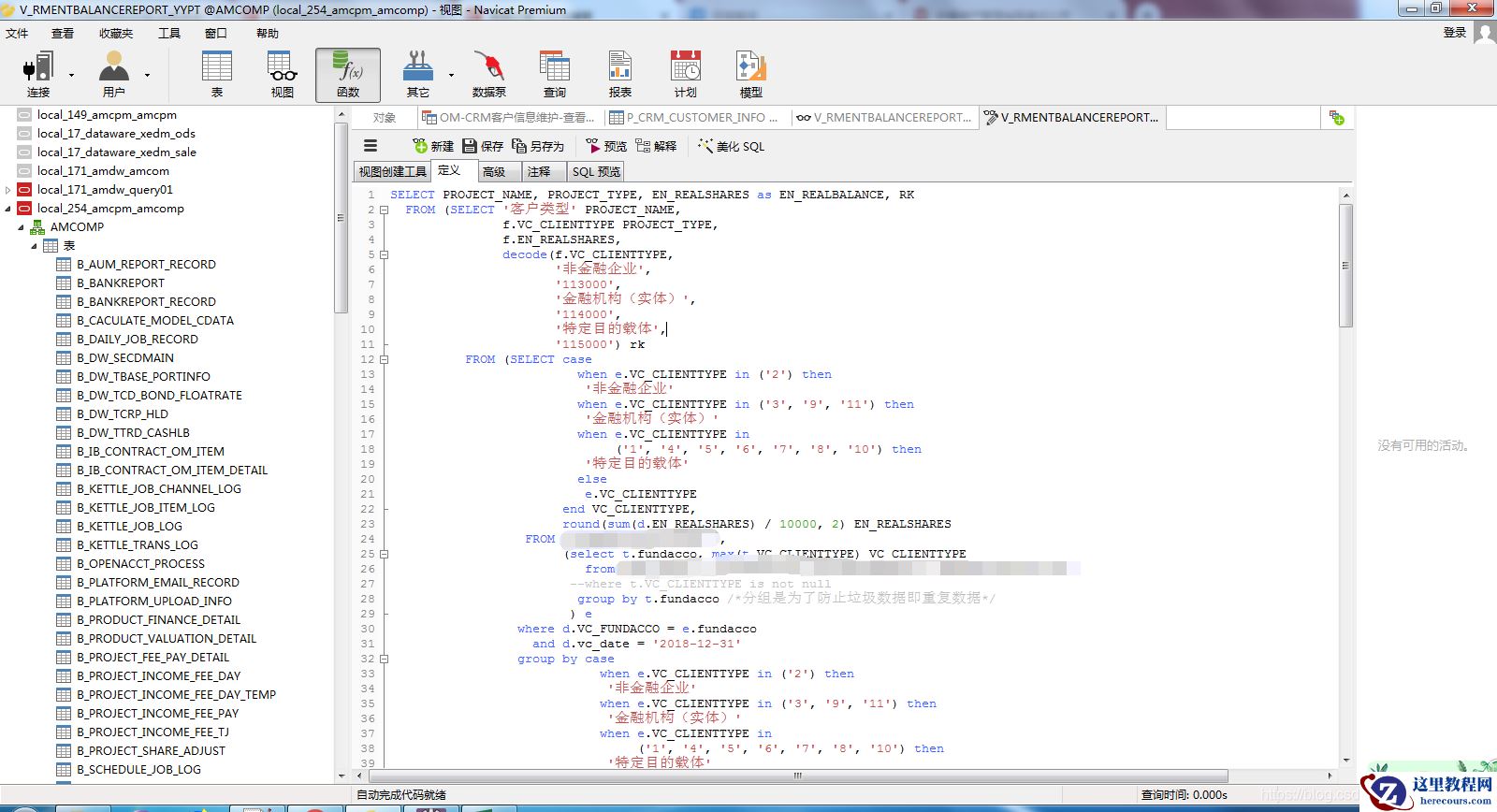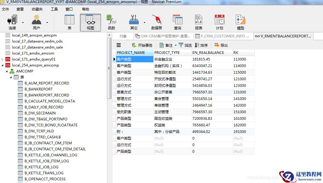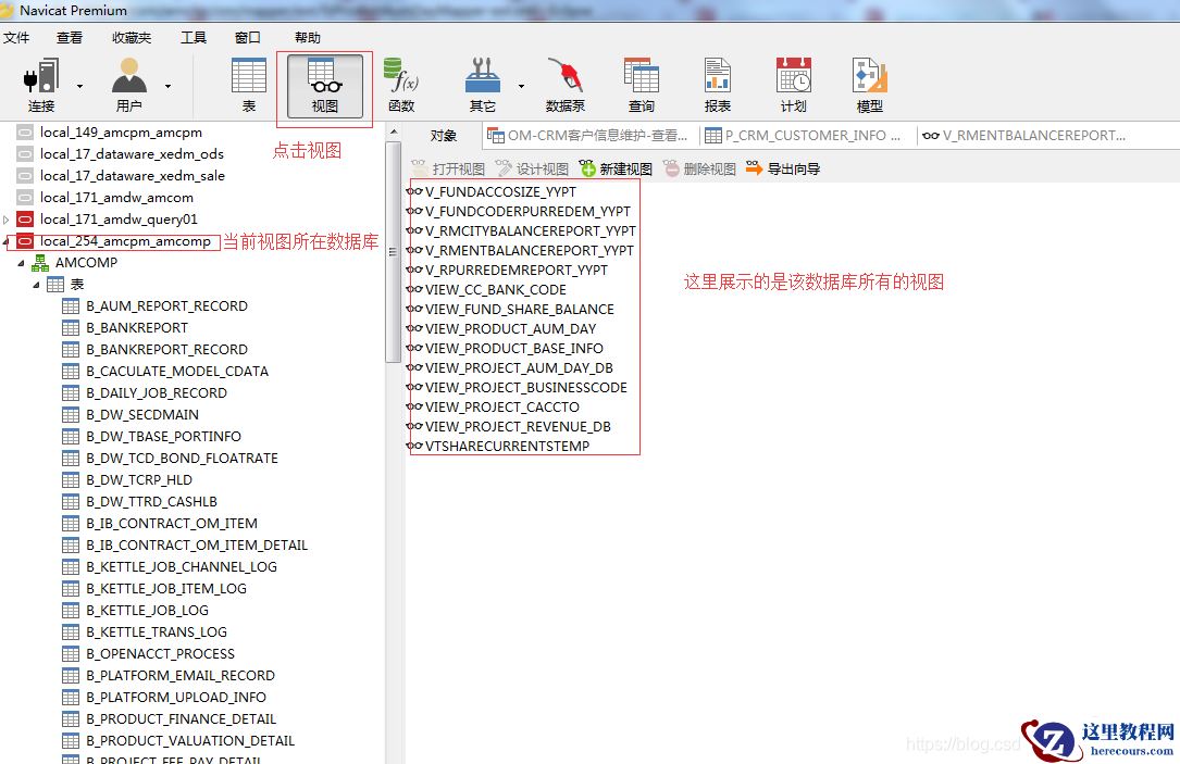 数据库是Oracle,使用的试图工具是免费版Navicat。