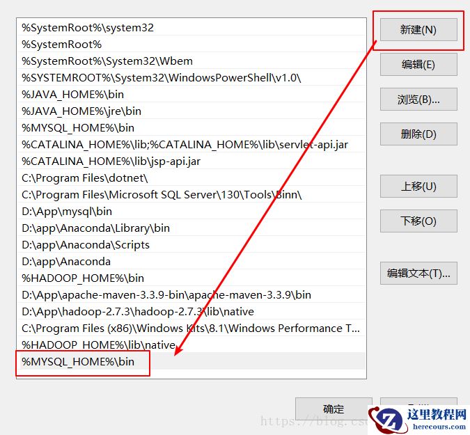 需要在变量值最后面添加 ;%MYSQL_HOME%\bin ( MYSQL_HOME%\bin前面带有英文状态下的分号)