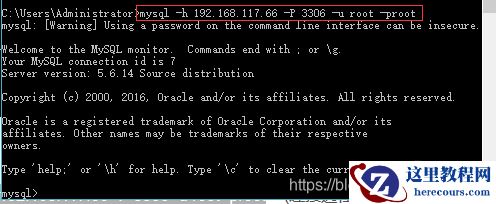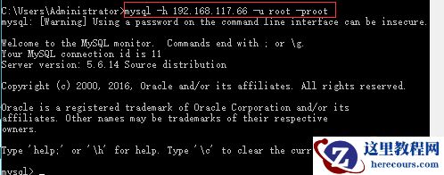 mysql -h192.168.117.66 -P3306 -uroot -proot就ok了,如下图: