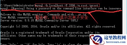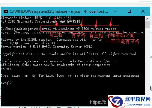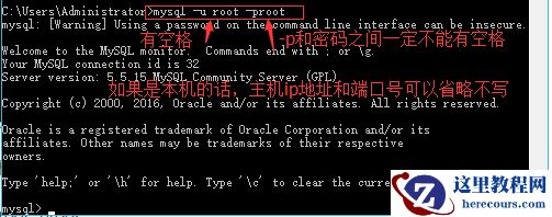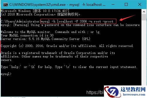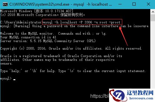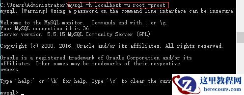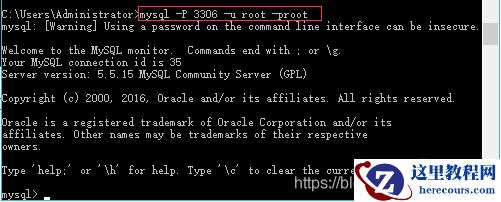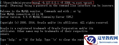 mysql -h localhost -P 3306 -u root -proot命令即可