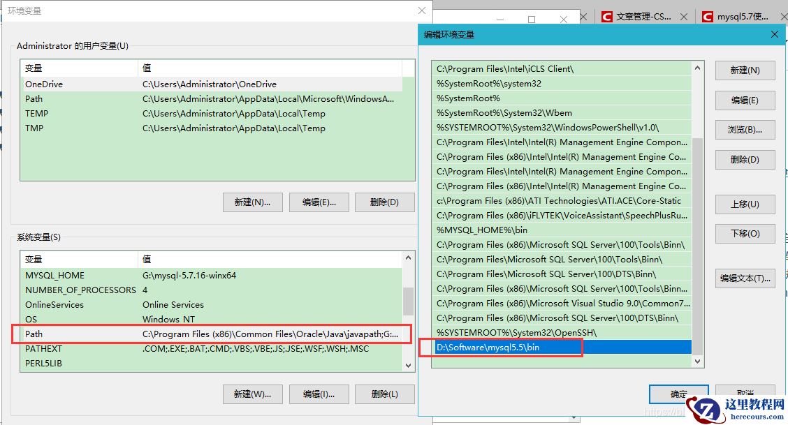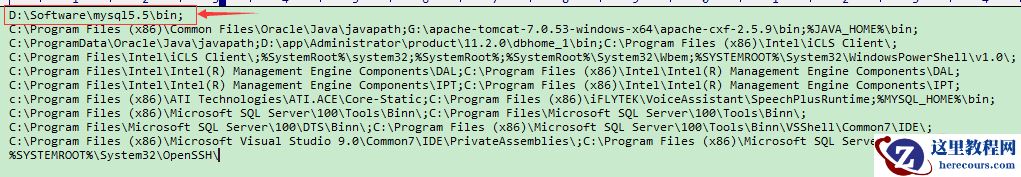如果有问题,你就把D:\Software\mysql5.5\bin这句话放在最前面,后面再加个;分号,其实类似于配置java的环境变量一样,如下图: