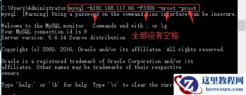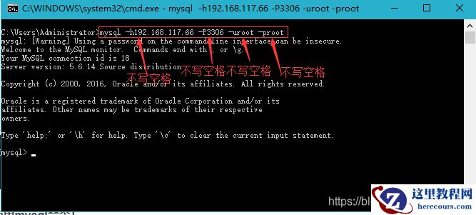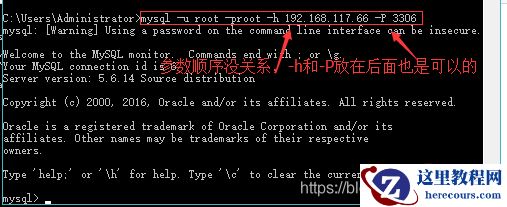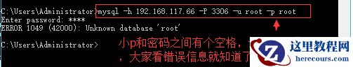 mysql -h 192.168.117.66 -P 3306 -u root -p root注意:小p和密码之间有个空格,这种写法是错误的,如下图: