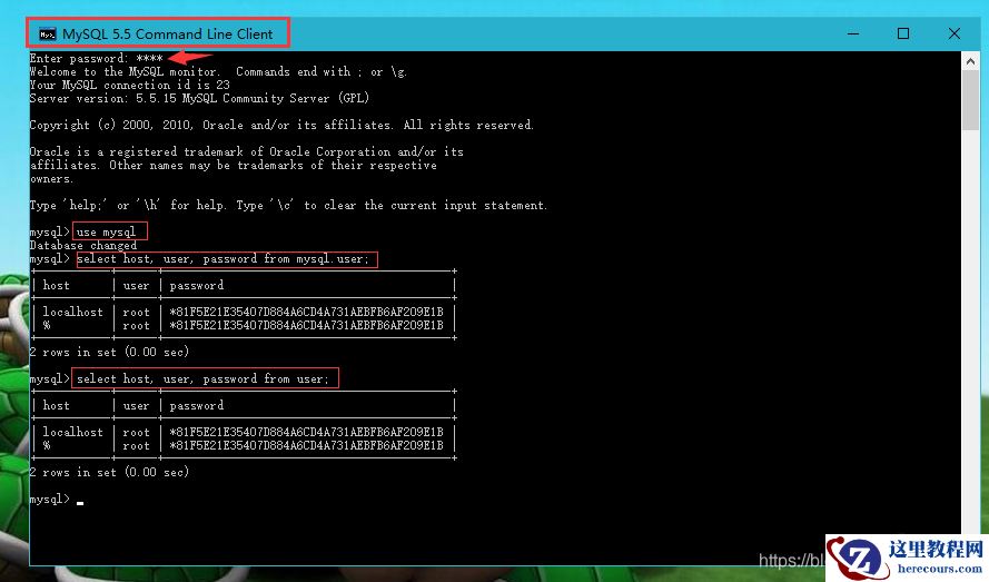 第1种 (通过mysql自带的客户端,MySQL 5.5 Command Line Client) 不推荐这种方式