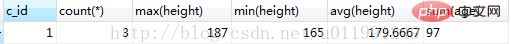 selectc_id,count(*),max(height),min(height),avg(height),sum(age) from my_studentgroup by c_id having COUNT(*) >= 3;
